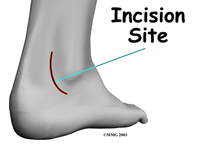 In surgery to repair the retinaculum, the surgeon first makes an along the back and lower edge of the fibula bone. This lets the surgeon see the spot where the retinaculum is torn.